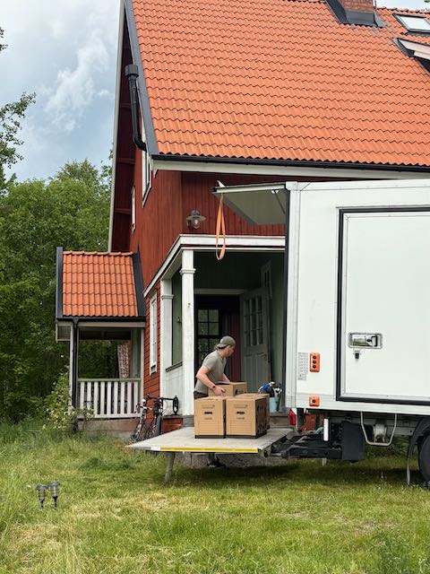 Umzug aus der Stadt aufs Land. Stockholm – Runhällen: 1 Mann und Hausbesitzer, 1 Frau, ein 3,5 Toner und ein Haushalt mit nicht so vielen Möbeln, aber einigen Kartons und gefühlt 1000 einzelnen Teilen…