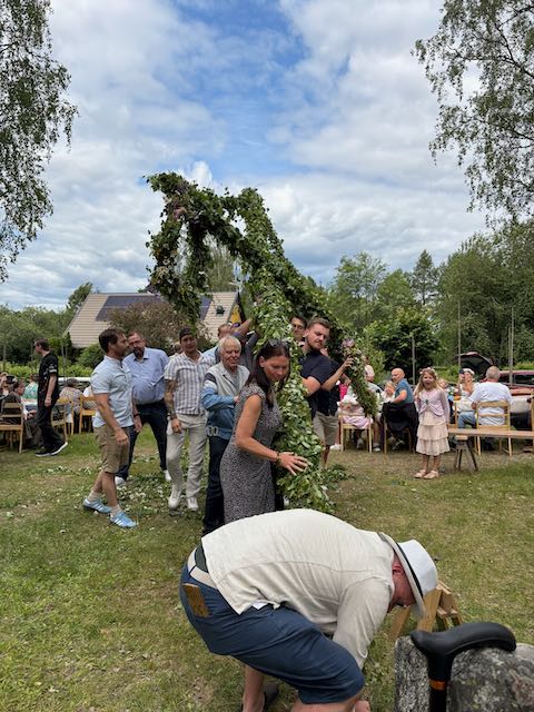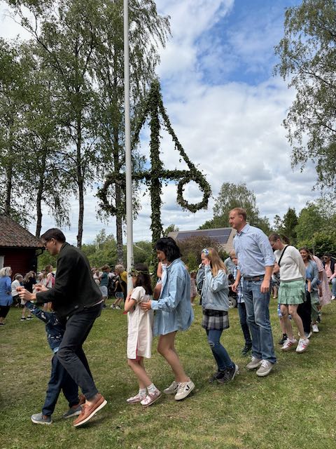 20.Juni. Ein großes, wichtiges Ereignis durften wir in der Dorfgemeinschaft direkt mitfeiern: Midsommar! Am Gemeindehaus in Runhällen, wurde der Baum aufgerichtet, es wurde darum herum getanzt und gesungen. Für die Gemeinschaft von Runhällen waren Tische eingedeckt, es gab Kaffee und Kuchen. Und wir mitten drin!