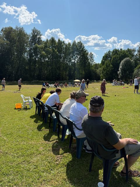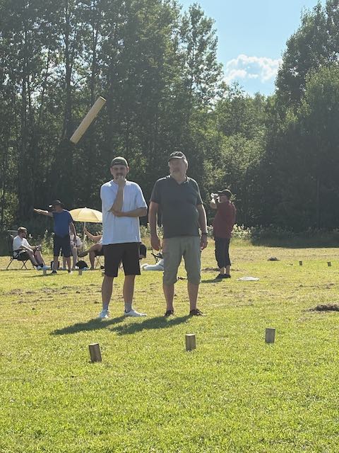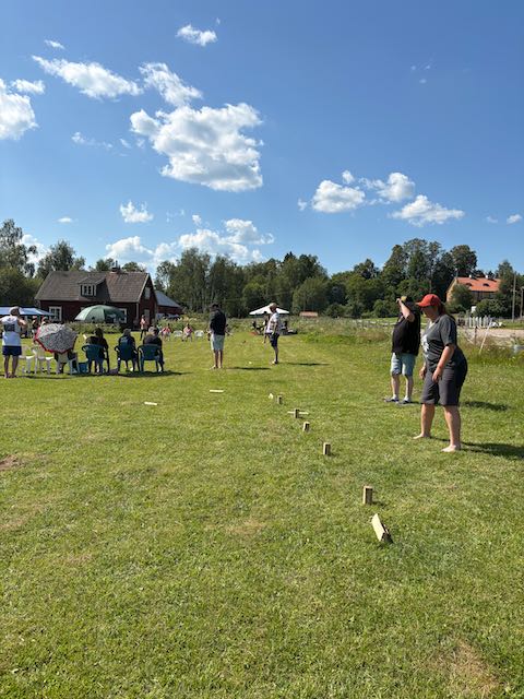 Kuben Turnier der Nachbarschaft mit Gästen. 80 Schweden in 6 Gruppen spielen dieses schwedische Schach gegeneinander und wir sind eingeladen mitzumachen. Sagenhaftes Wetter, sehr nette Leute – eine tolle Erfahrung.