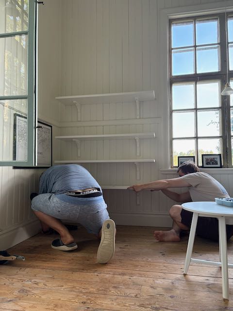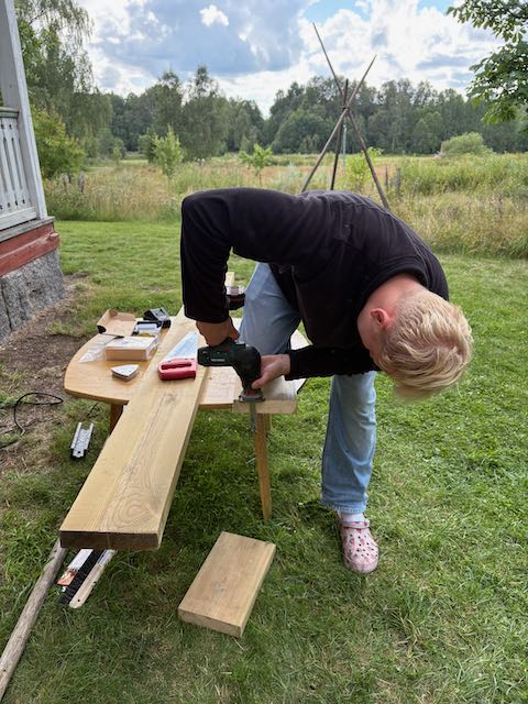 Was Eltern dann so unterstützend machen: Umziehen aus der Stadt aufs Land, einrichten, herrichten, sehen, dass es der Sohn gemütlich hat. Dazu kommen Renovierungsarbeiten, der Garten wird in Schwung gebracht, Feuerschale gekauft und aus dem Haus ein Zuhause machen: Im Mai, in den Sommerferien, in den Herbstferien, über Nikolaus. Herrlich. Durch Secondhand Läden gestreift, bei Ikea Dauergast gewesen, Baumärkte sind unser bester Freund und der Holzhandel natürlich. Wir haben gebaut, Holz gedackt, ein Plumpsklo reaktiviert und einen Raum für ein weiteres Komposterklo gebaut, Möbel gezimmert, Bilder aufgehängt, geschrubbt, Fenster gängig gemacht, einen Küchenblock gebaut, Kabel gezogen und einfach rumgepröttelt. Aber auch die Nachbarn kennengelernt, Midsommar gefeiert, im See schwimmen gewesen, Stockholm weiter erkundet, die Gegend im Nichts entdeckt und festgestellt, dass es dort doch Leben gibt und viel, viel Natur. Und wir haben Elche gesehen – ja – haben wir.