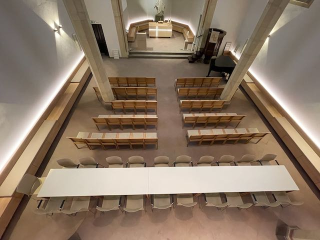 Für mich als Innenarchitektin ein außergewöhnliches Projekt. Die Chance, ein Projekt ganzheitlich zu gestalten mit allem, was dazu gehört: Möblierung der Kirche, Lichtkonzept, Einbauten, grafische Gestaltung, einen Altar zu entwerfen und zu bauen, dem ganzen Projekt eine Leitlinie zu geben und dann noch mit einem tollen Entscheiderteam zu arbeiten – hat es zu einem Herzensprojekt gemacht.