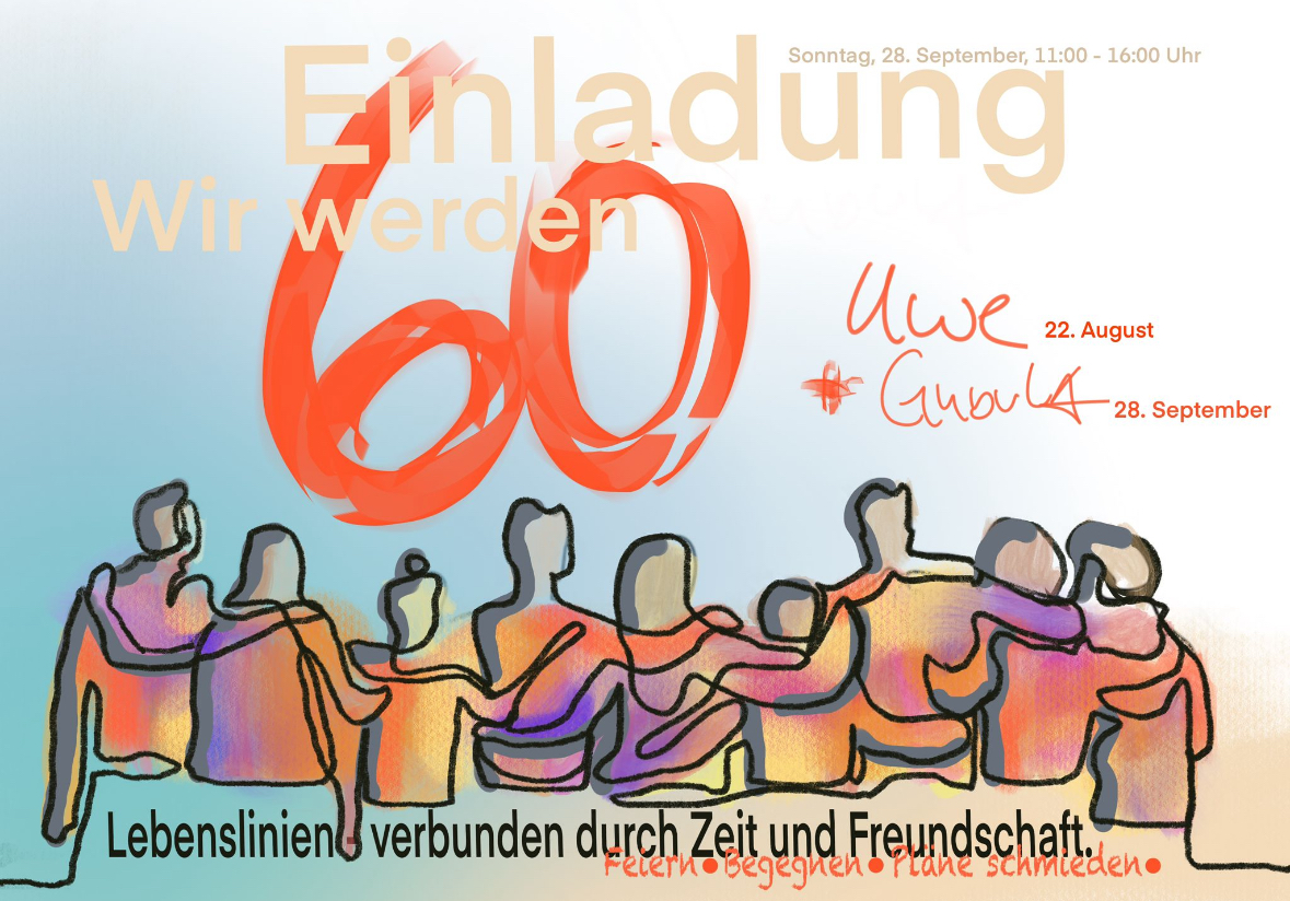 Ja, was für ein Thema hat denn die Veranstaltung? Wir feiern uns? Wir feiern 60 Jahre mit Rückblick? Was ist uns denn wichtig? Was machen diese 60 Jahre für uns aus? Das Interessante war, dass wir anfingen, unser Leben zu betrachten. Wir haben noch Meilensteinen geschaut, nach Ereignissen, die uns wichtig waren, die uns geprägt haben. Eine Reise in unsere Vergangenheit, in unser Geschichte. Uwe und ich haben Dinge unterschiedlich gewichtet. Viele Meilensteine waren auch klar, manch eine Jahreszahl mussten wir genauer recherchieren. Bei dieser Auseinandersetzung ist uns klar geworden, wie wichtig und welche Bedeutung Freundschaften für uns und unser Leben sind. Außerdem wollten wir gerne vermitteln, dass mit dem 60. Geburtstag nur ein Zwischenschritt erreicht ist und wir weiterdenken wollen und Pläne schmieden.