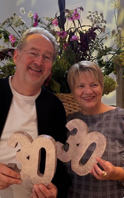 Fun Fact: Ich wollte eine 60 kaufen – gab es nicht, 60 war aus! So habe ich dann 2×30 mitgenommen. Mit der Geschichte, dass wir ein großes Fest zu unserem 90. gefeiert haben und damals die Geburtstagszahl verdoppelt haben. Jetzt halbieren wir besser, die Zahlen werden einfach zu groß….